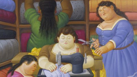 A la imatge, fragment d'"El Costurero" (2000) de Fernando Botero.