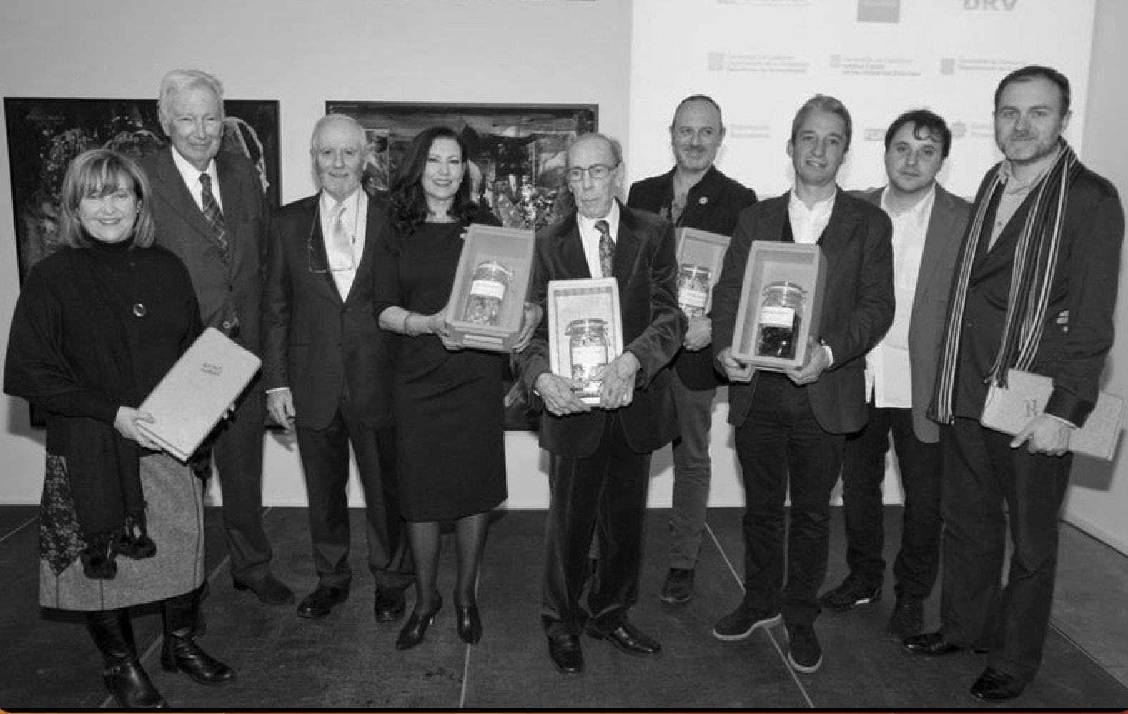 Vila Casas amb els premiats i els editors de bonart durant els premis de 2013 que el grup cultural organitza i que es van fer diverses vegades a la seu de la fundació barcelonina de l'entitat.
