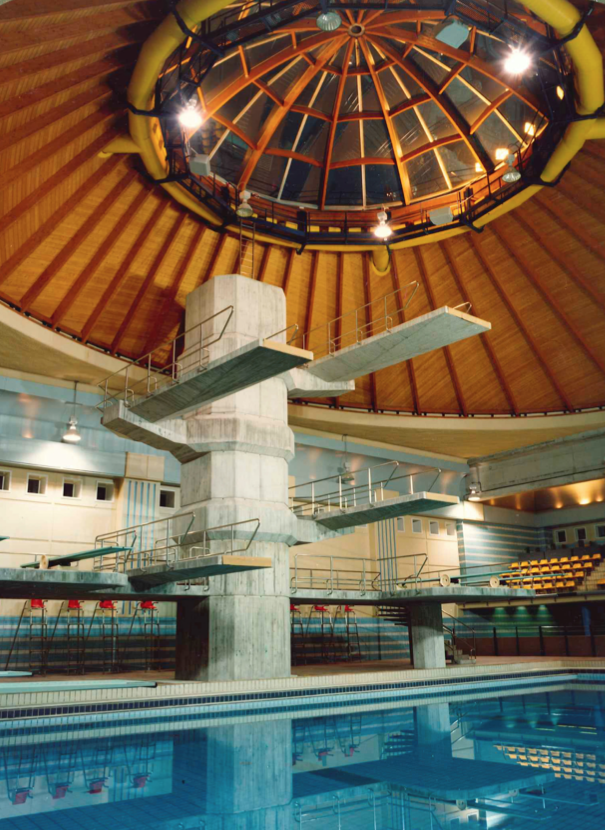 Foto: Campionats del món de natació Madrid’86. Torra de salts sota cúpula.