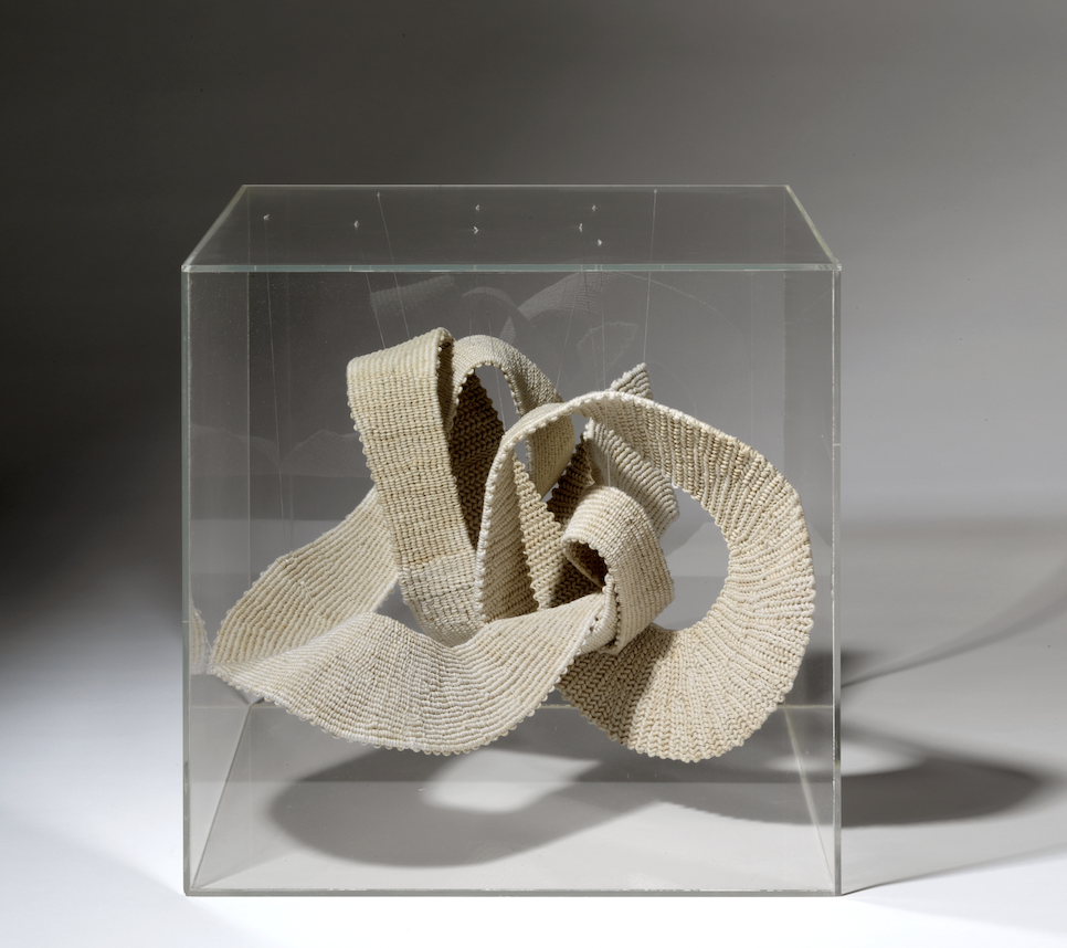 Especial rellevància adquireix la presència d’Aurèlia Muñoz, figura cabdal aquest 2026, any en què el MACBA i el Museu Reina Sofia li dedicaran una gran exposició conjunta. La seva obra exemplifica com pocs casos la dissolució de les fronteres entre art i artesania. A Ovals blancs, el macramé deixa de ser tècnica tradicional per convertir-se en estructura tridimensional: el fil es transforma en volum i construeix formes obertes que ocupen l’espai amb una lleugeresa orgànica i una clara vocació d’infinit.