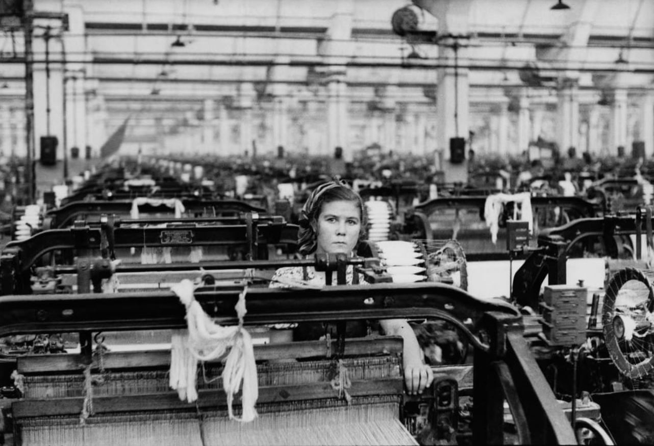 From the 1950s, Cartier-Bresson became interested in the relationship between the human being and the machine. His photographs of factories and industrial workers show how the machine, far from being a simple element of production, had completely transformed modern life. But, unlike many of his contemporaries, he did not criticize or idealize these transformations, but merely showed this relationship as an inevitable symbiosis.