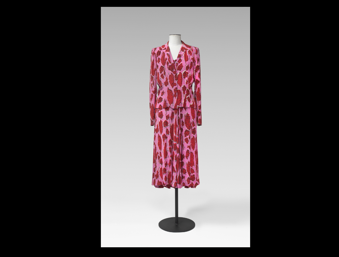 Vestit jaqueta a joc amb estampat trompe-l’oeil per Salvador Dalí, c. 1948