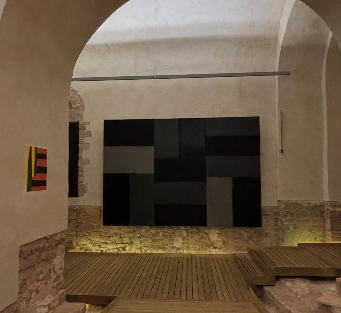 Sean Scully ideó trípticos, polípticos, pinturas al fresco, cruces y vidrieras en el interior del templo, creando un importante binomio durante la exposición en La Pedrera. Scully es protagonista en el espacio de Barcelona de manera temporal y lo es de manera permanente en Montserrat, logrando un equilibrio notable entre lo moderno y lo sagrado, entre la abstracción y lo espiritual, con unas instalaciones que van más allá de lo visual.