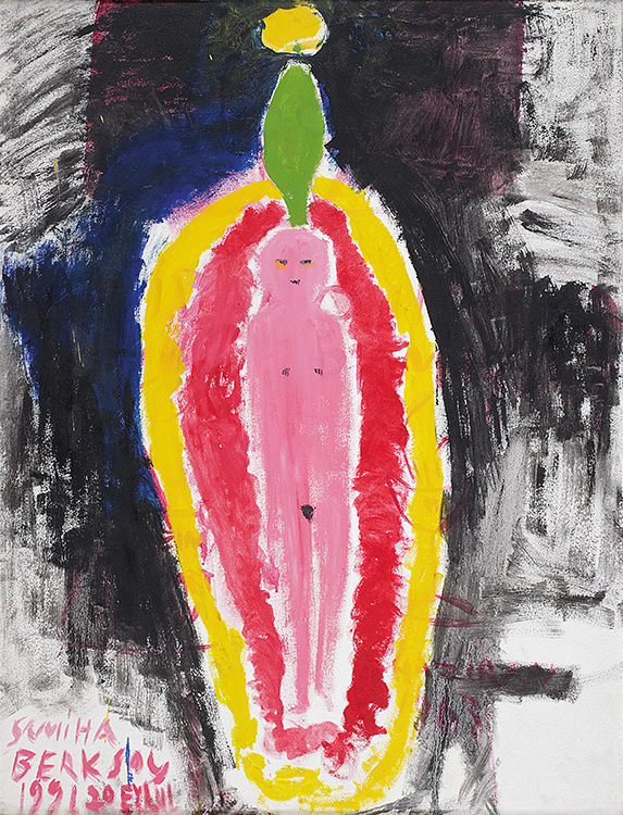 Berksoy, considerada no solo la primera gran soprano dramática de Turquía, sino también una pionera en cruzar sinergias entre disciplinas artísticas, trasladó al arte visual la intensidad de la experiencia escénica. Formada simultáneamente en pintura en la Academia de Bellas Artes, en drama y en música, se convirtió además en la primera mujer turca en interpretar papeles operísticos principales en escenarios europeos. Su obra desafía los límites entre lo vivido y lo representado: el cuerpo, la voz y la narrativa dramática se entrelazan con el gesto pictórico en una poética profundamente personal.
