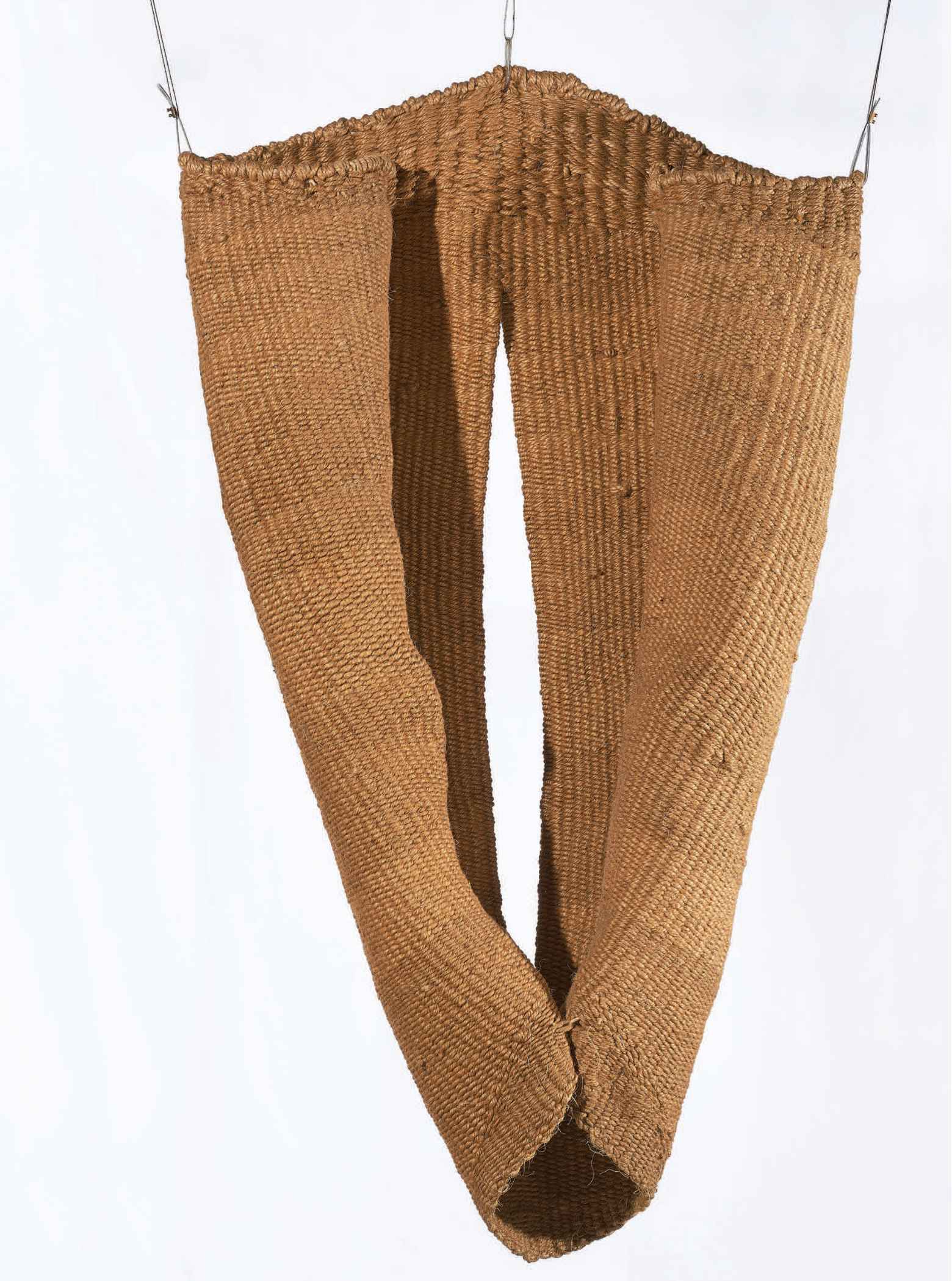 Entre las piezas centrales destacan Cascada (1978) e Ilerda V (1973), tapiz que remite a la ciudad romana de Lleida y a la tradición textil que Palau exploró durante su estancia en Cataluña en 1968. La artista recordaba: “Yo empiezo con los materiales; una vez tengo los materiales, ellos me van diciendo cómo… Nací en un pueblecito de campesinos, Albesa, y la tierra es sagrada. El tapiz me llegó por ahí”. Su relación con el textil también se enriqueció con tradiciones ancestrales del continente americano y con el aprendizaje junto a Josep Grau-Garriga, maestro textil que colaboró con Joan Miró y Antoni Tàpies, fortaleciendo su vínculo con la tierra de sus padres.