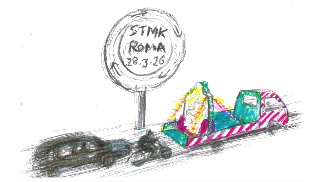 El proyecto STMK TRIP recupera esta figura para activar una serie de procesiones contemporáneas que, inspiradas en las romerías tradicionales, exploran el desplazamiento, el encuentro y la construcción de comunidad a través del ritual, la comida y el espacio público. En su paso por Roma, Sant Stomak se convierte en eje de una acción performativa que propone leer la ciudad como un palimpsesto urbano, atravesado por capas de historia, infraestructuras y prácticas cotidianas.