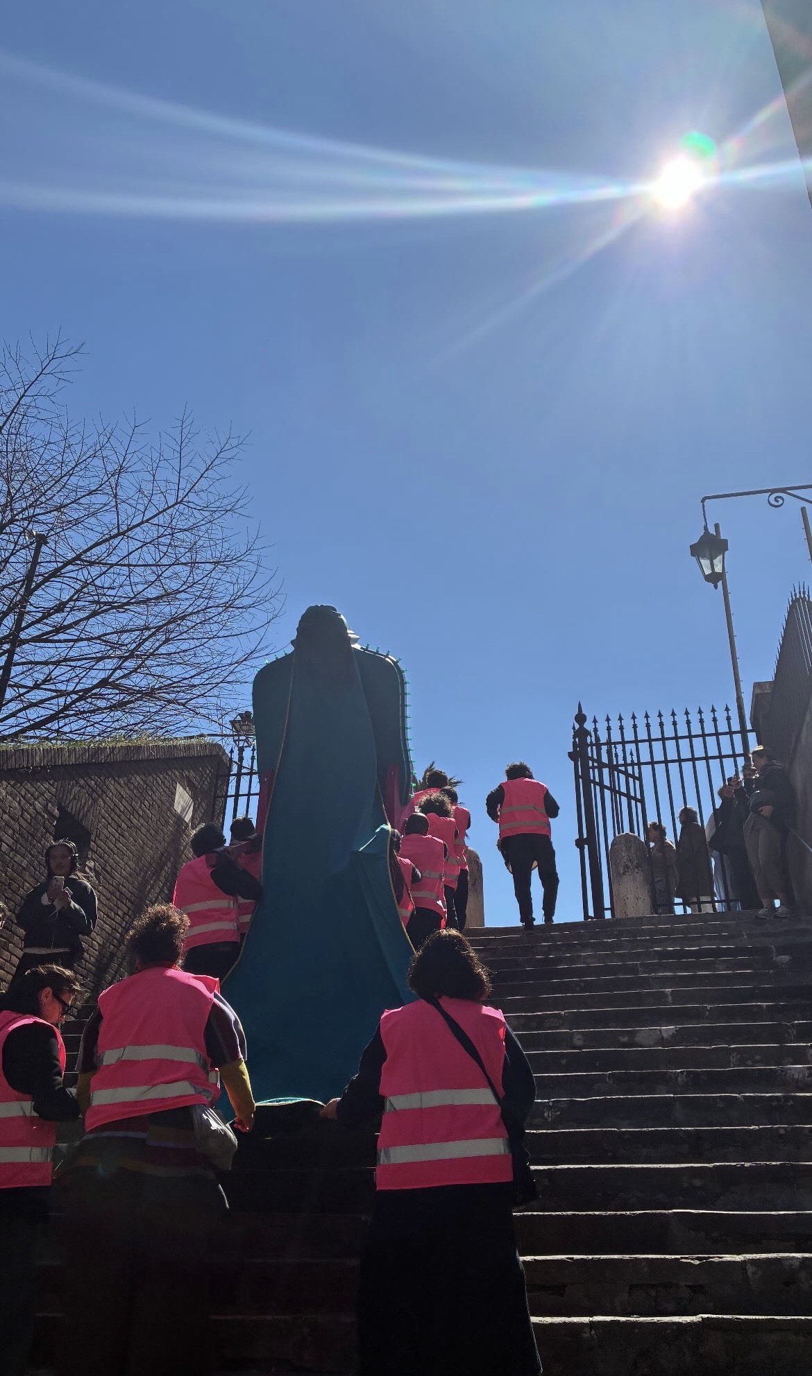 La acción culminaba entre las 12:00 y las 13:00 h con “Sant Stomak Meets San Pietro”, una procesión final desde el Gianicolo hasta el Tempietto del Bramante, en la sede de la Academia. Allí se instalará el relicario y se celebrará un ritual de ofrendas centrado en la comida, la digestión, el hambre y los hábitos cotidianos.