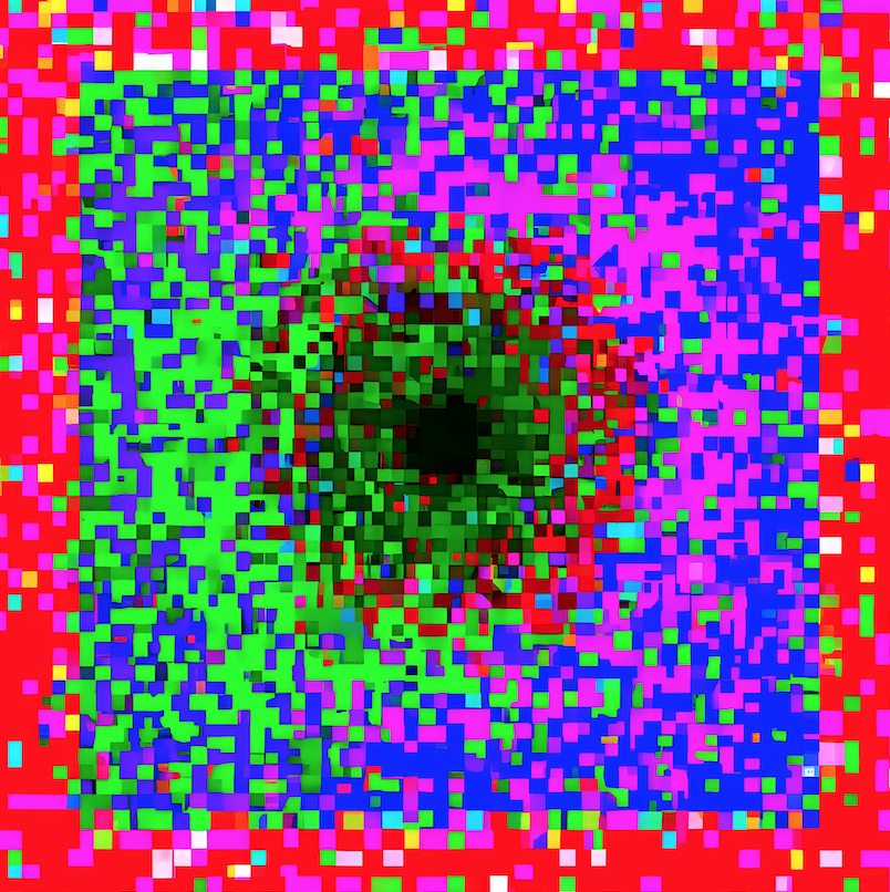 L'exposition présente également plusieurs pièces qui font partie du MOGA_Museum of Glitch Aesthetics (2012). Il s'agit d'un musée virtuel et d'une œuvre d'art transmédia qui héberge diverses formes de glitch art . Il a été commandé par le Abandon Normal Devices Festival à l'occasion des JO de Londres 2012. Ce musée virtuel nous montre la capacité expressive de l'erreur, tout en rompant avec notre construction mentale du réel. Nous vivons dans une ère post-numérique dans laquelle l'image hyperréelle haute résolution est recherchée pour sa proximité avec la réalité. En ce sens, le glitch art interroge ce type d'image par la déformation et humanise en quelque sorte la technologie. La connexion du glitch art avec d'autres mouvements artistiques est évidente puisque le goût pour le différent, l'étrange, le déformé a été représenté à de nombreuses reprises par des artistes tels que El Bosco, Goya, Francis Bacon ou Louise Bourgeois, parmi tant d'autres. L'une des pièces exposées est une manipulation de Saturne dévorant son fils ; une des peintures noires de Goya.