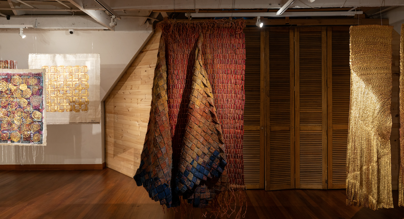 Vue de l'exposition « Olga de Amaral » à l'Institut d'art contemporain de Miami, Cenit, 2019 © Olga de Amaral. Photo © Juan Daniel Caro.