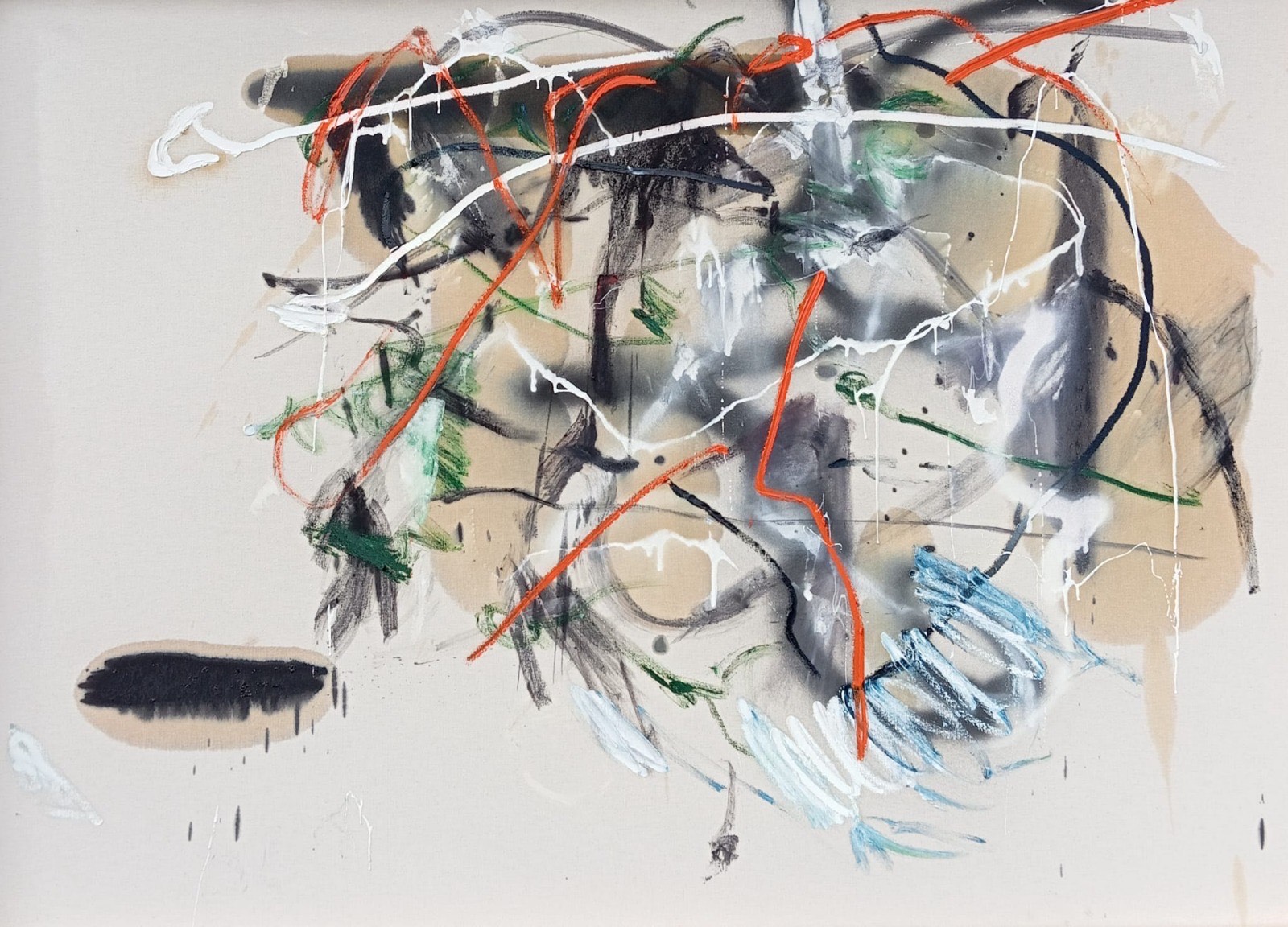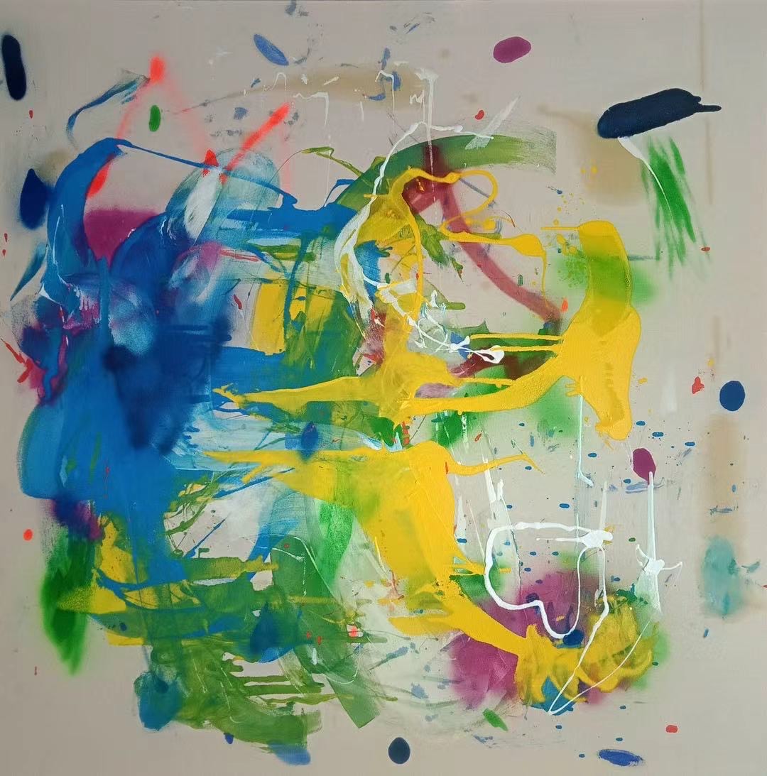 L'un des aspects les plus remarquables réside dans le comportement de l'huile sur la toile : sa filtration engendre des accumulations, des glacis et des transparences qui brouillent la frontière entre surface et profondeur. Les couleurs ne se contentent pas d'occuper l'espace, mais s'entrelacent dans un jeu de tensions et d'harmonies qui captive le regard du spectateur. Dans ce dialogue des contraires – maîtrise et accident, opacité et transparence, structure et dissolution – se trouve l'un des cœurs conceptuels de son œuvre.