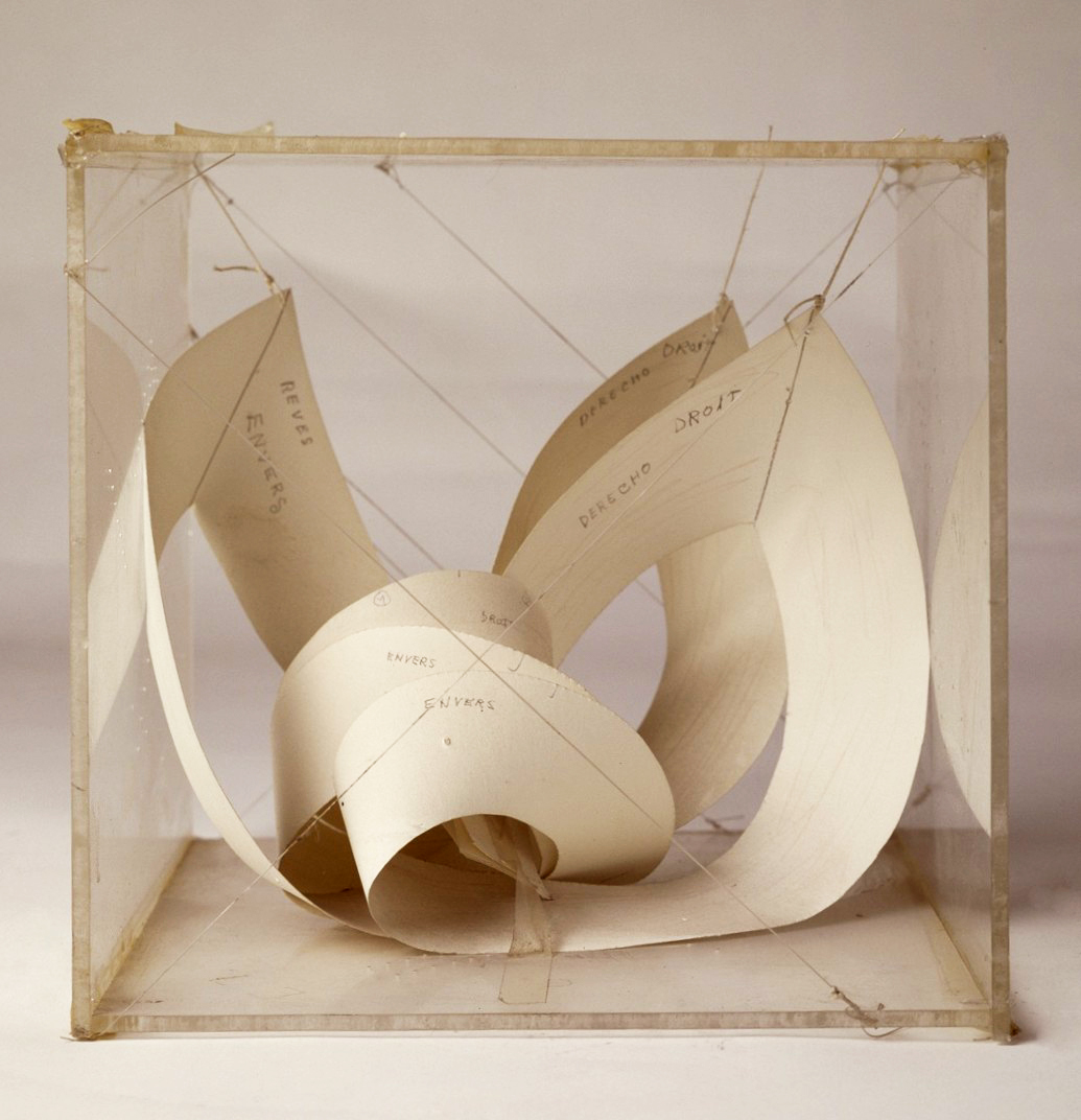 Aurèlia Muñoz, Maqueta para Ondulaciones, 1974. Papel e hilos de lino, urna de metacrilato (22 x 23 x 22). Museo Reina Sofía, Madrid.
